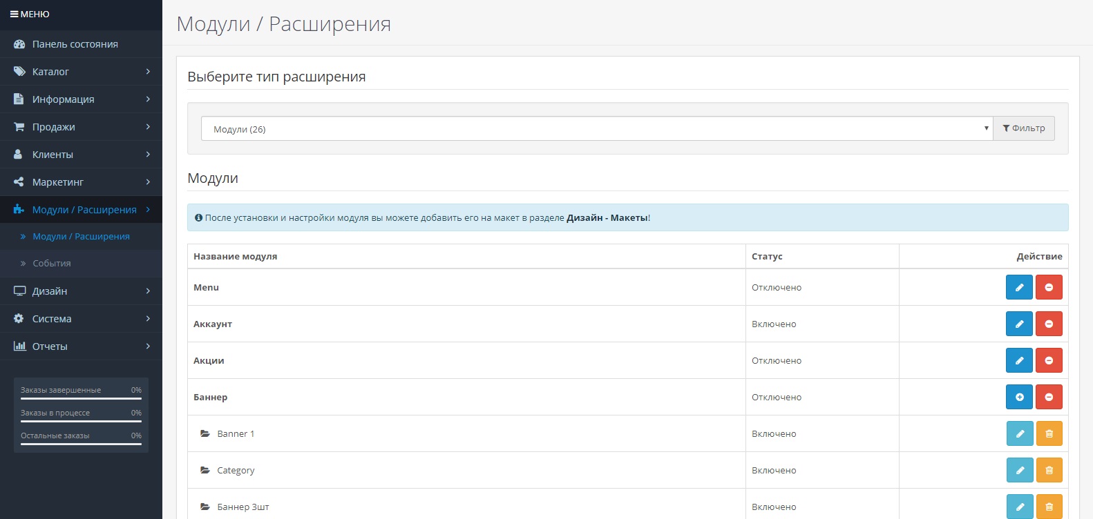 Модули - это дополнительный функционал вашего интернет-магазина.